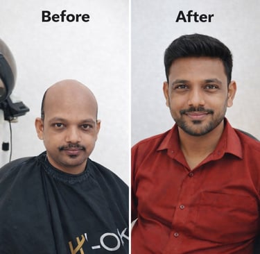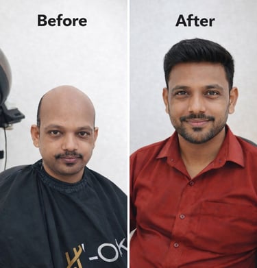 At our Chennai studio, we specialise exclusively in hair replacement in Chennai, offering custom hair systems that blend seamlessly with your natural hair. Our solutions are ideal for baldness, thinning hair, and receding hairlines — with instant results and zero surgery.